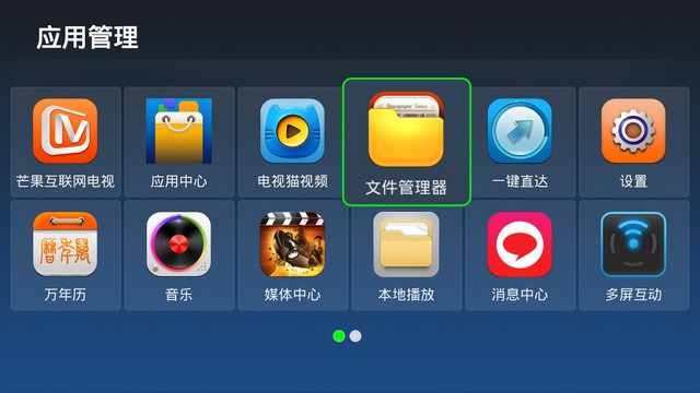 步骤2. 将下载的“遥控精灵TV”文件放入U盘,并将U盘插入盒子,打开文件管理器